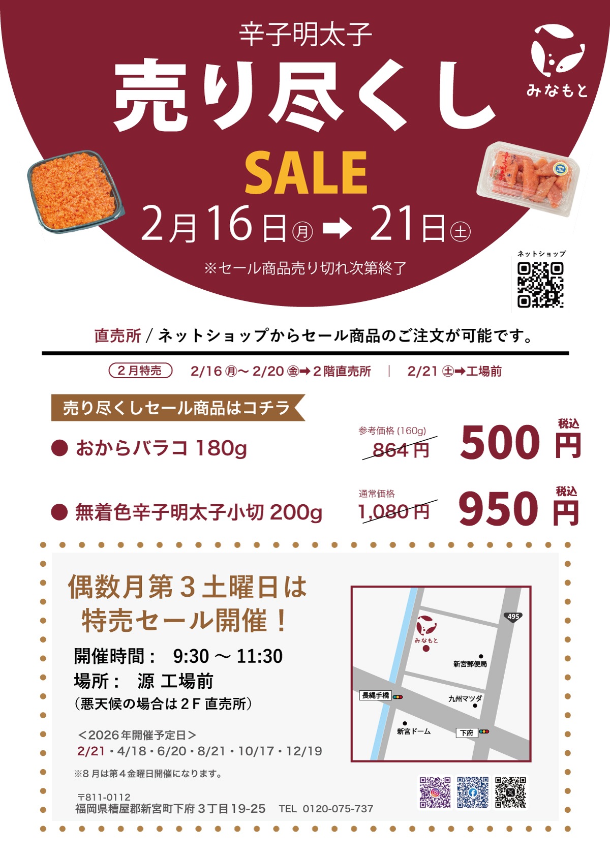 【売り尽くしセール開催】 2026年2月16日(月)〜2月21日(土)の期間中、源の直売所・ネットショップにて 売り尽くしセールを開催いたします。